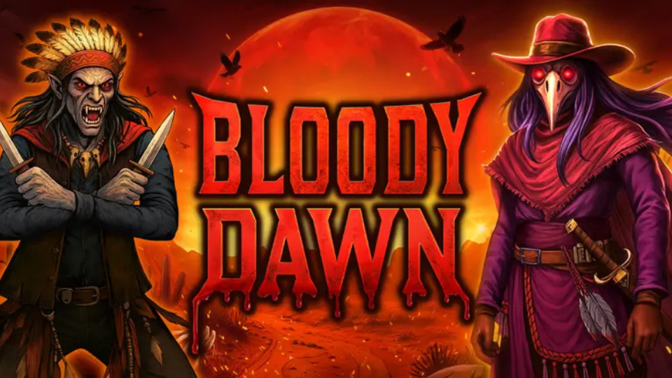 The Bloody Dawn slot plunges players into a dark, gritty world that fuses a Wild West frontier with vampiric horror characterised by dusty saloons, blood-red skies, and shadowy outlaws meet supernatural danger and gothic dread.